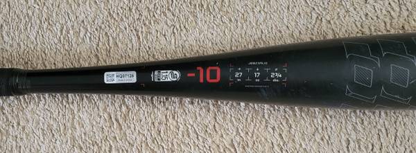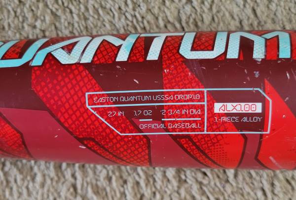 I have four baseball bats. All are drop ten, USSSA 1.15 bpf, 2 3/4. Stringking Metal Pro 2 (28in / 18oz) - $30 Easton Alpha ALX (27in / 17oz) - $25 Easton Quantum ALX100 (27in / 17oz) - $15 Marucci...