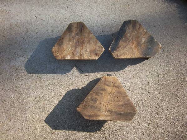 3 Wood Snowmobile Dollies, with 2" diameter casters.