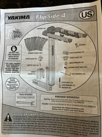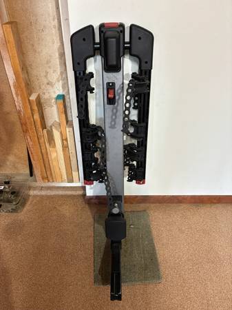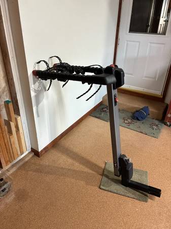 For sale is a Yakima bike carrier. It holds up to 4 bicycles. Excellent condition. Hooks up into a standard hitch. Complete with all hardware, instructions, lock, and keys. Folds up for easy storage. Very solid construction. Saris bike beam included for additional mounting options.