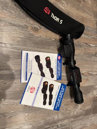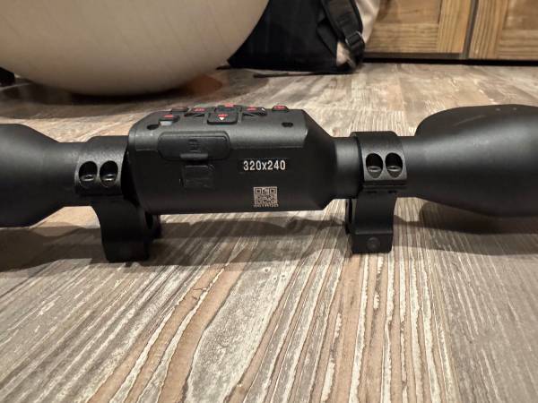 ATN Thor 5 320x240 sensor 4-16x zoom. Has built in laser ranger finder and ballistics application.