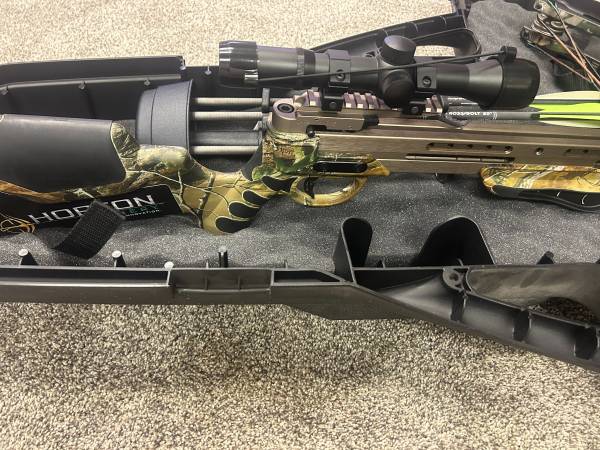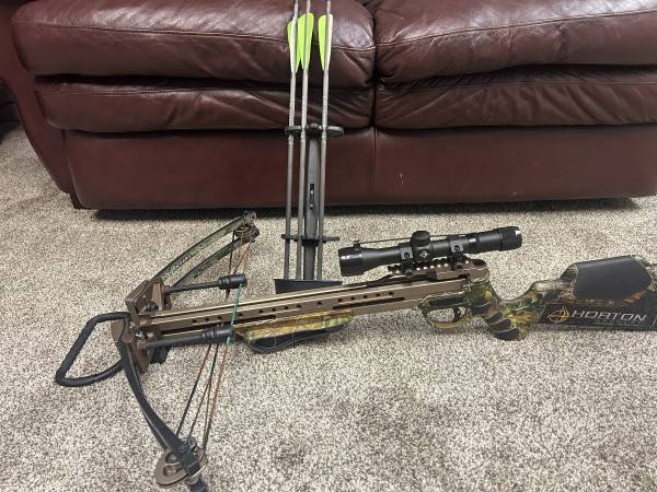 Horton Crossbow with Scope and Hard Case Used only 1 time, purchased from Cabela's Went to an Archery Dealer in Brookfield and they said the crossbow is in very good condition for its age -...