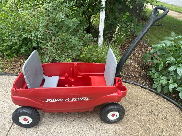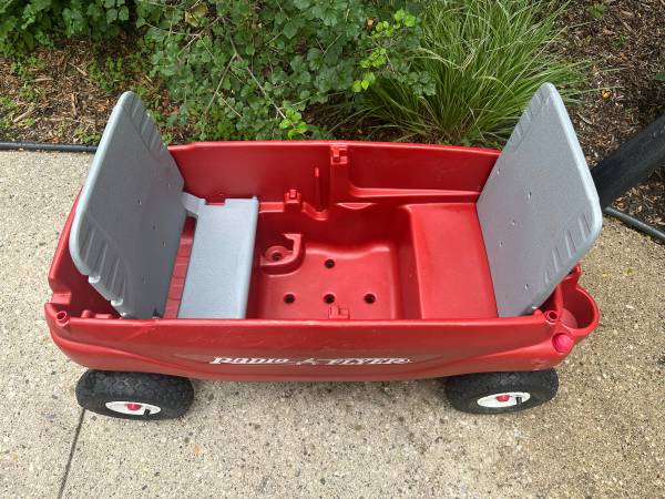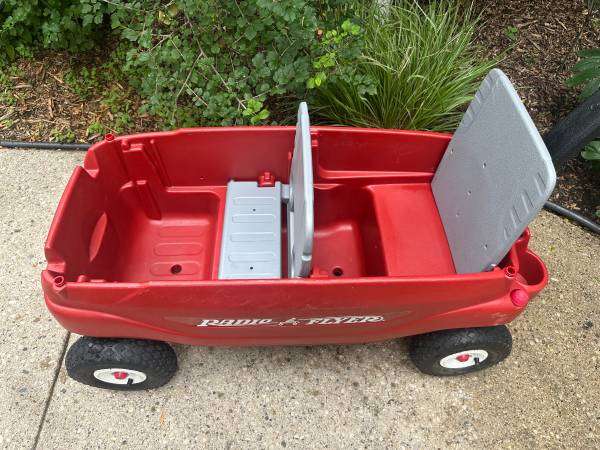 Radio Flyer Wagon Perfect clean condition. Features pneumatic tires for a smooth ride, fold flat handle, multi function position seats and storage, 6 cup holders, Made in USA. Sold as shown.