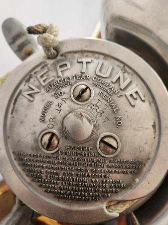 1937 Neptune model 12 A outboard motor and stand (as shown.) This 2 hp. unit is fully restored and in excellent condition for an 87 Y/O machine. The engine will run but I have not started it since the professional rebuild. It has been a showpiece in my home for several years and it's time to redecorate so I am offering it at the listed price.