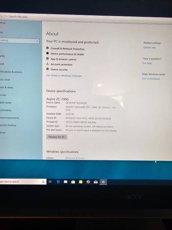 Refurbished all in one Acer computer. Works great! Includes cords,keyboard & mouse. Smoke free home $200 obo