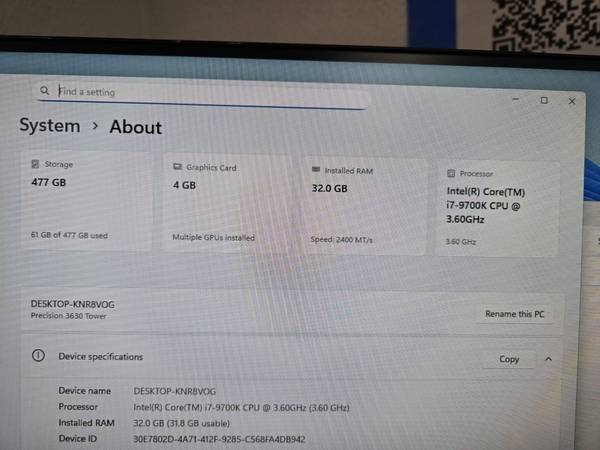 Several Available 414x202x4087 Dell Precision 3630 Desktop Intel Core i7 9700K 3.6Ghz Processor 32GB Memory 512GN NVME AMD Radeon WX3100 Windows 11 Professional