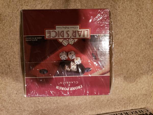 $10 Upwords $7 Game of the States $8 Scrabble $10 Sequence $15 Green Bay Packers Checkers Game $10 Liar's Dice by Front Porch Classics (new) $10 life $3 checkers $5 last chance game $10 pictionary...