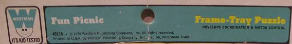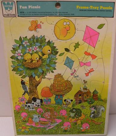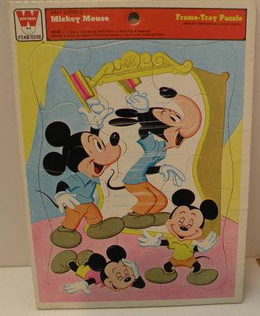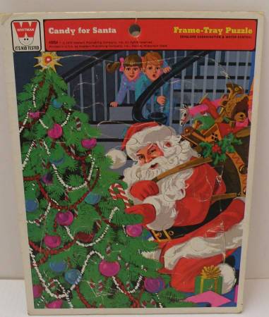 Whitman Frame Tray Puzzles: 1969 Walt Disney's Mickey Mouse 4514A - $10.00 1974 Fun Picnic 4513A - $10.00 1975 Candy for Santa 4505A - $10.00 ALL 3 for $25.00