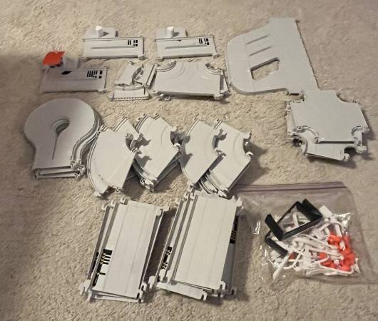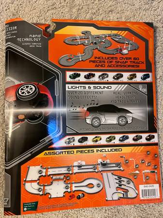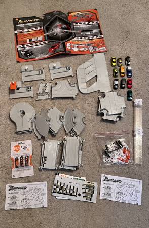 For sale is a gently used Hexbug Tagamoto race track with ten cars. There are three ways to play with this set: 1)off road 2)roads and codes and 3)free roll. The police car has a rotating light bar and loud speaker. The other cars have head lights, tail lights and vibrating motors. Included with this lot are over 60 pieces of snap track, accessories, instructions and 10 replacement batteries. The batteries in some of the cars will most likely need replacing. All cars work.
