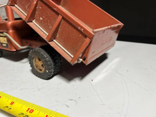 Vintage pressed steel Tonka bronze hydraulic dump. Shows very nicely. Dump box and gate work very nicely. Cash only