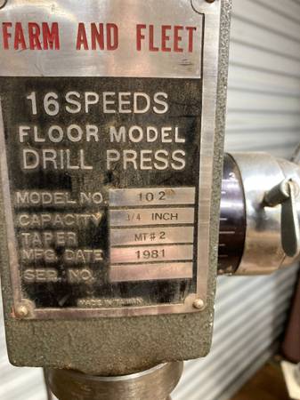 $85.00 - Floor Model Drill Press, Farm & Fleet Brand, works good, see pics