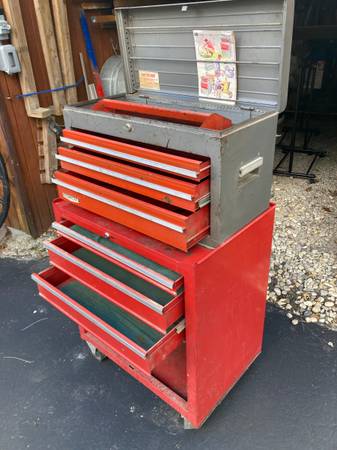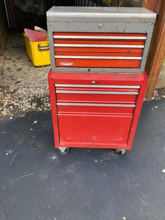 $45.00 - Tool Cabinet, Craftsmen brand, 3 drawer top unit and 3 drawer +, lower cabinet, see pics