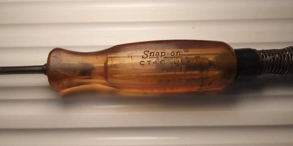 Have 3 Vintage Used Snap On Ratchets, Model S-71 chrome 1/2" drive, GF 72OA - 3/8" drive, Midget M-701 - 1/4"drive, All show some age and use, EACH $ 40 CASH -- Have Old 1950s Snap-On Socket Set Empty Box, Pressed heavy steel, Dark gray color, Embossed hinged top, Small for 1/4" drive set, Nice for age, First $ 40 CASH -- Have Vintage Used Snap-On Electric Current Power Tester, CT4C for circuit testing 12 Volt, Rubber 72" long cord with alligator style clip end, Works good, Shows slight age and use, First $ 40 CASH -- Call no answer leave message / E-mail name with phone number