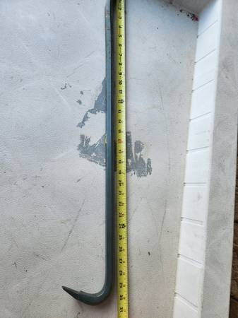 30 inch long crow bar. heavy duty. 1 tang is broke off as shown in picture, hence the price.
