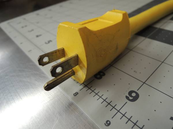 Heavy Duty 15 Amp to 20 Amp Electrical Plug Adapter Cord and Box Single Gang Cast Box with a 20A White Industrial Specification Grade receptacle with a Flexcor strain relief on Polar/Solar 12/3 SOW...
