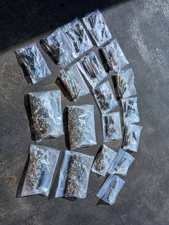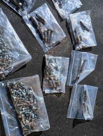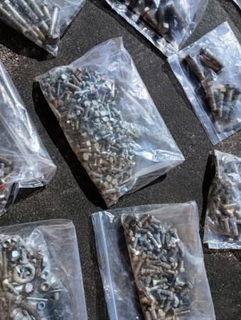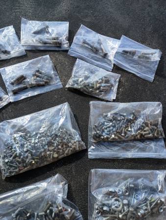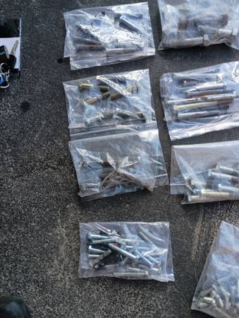 Bolts, Hex Head Cap Screws, Nuts, Washers, Screws, etc. I have inherited a huge collection of hardware that I want gone. Everything is in zip-lock bags for convenience. Have even more than what's in the pictures as well. $10 bucks takes everything. You can't buy these for that cheap. I don't know the sizes so please come take a look, thanks.