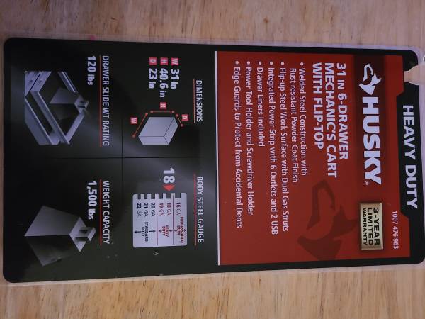 Like New Husky Brand Rolling tool chest Mechanics Cart with 6 Drawers