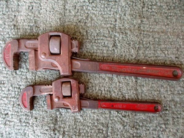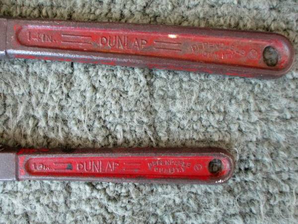 LOT of 2 - DUNLAP 10" and 14" PIPE WRENCHES - MADE IN USA GOOD USED CONDITION - PLEASE VIEW ALL PHOTOS PRICE: $15.00 FIRM - CASH ONLY PLEASE EMAIL WITH PHONE NUMBER - I DO NOT TEXT (FYI: I HAVE MORE...
