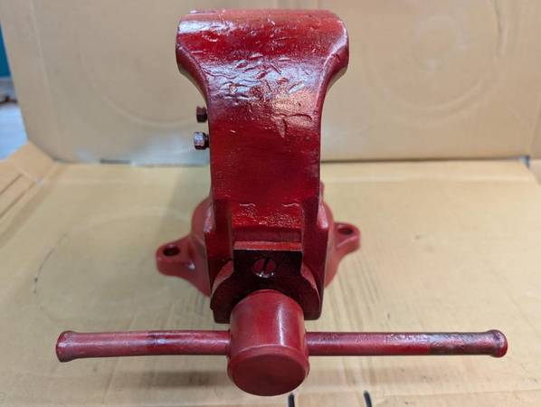 Simplex 3-1/2" bench vise model 33GPN with a swivel base and steel slide. Made by the Desmond Stephan Mfg. Co. of Urbana, Ohio. The vise has been cleaned up and lubricated and works good.