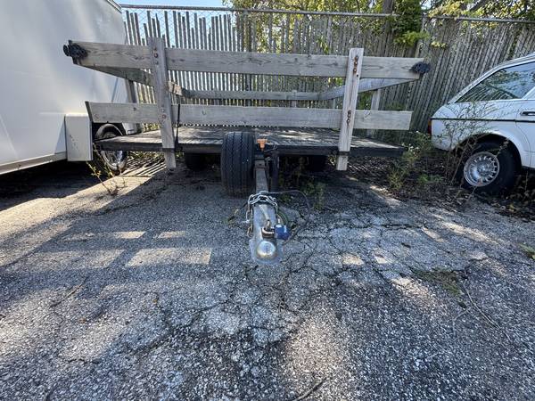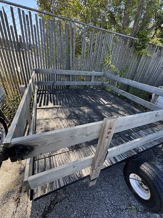 Utility / Snowmobile trailer with removable sides . I have had it for 4 years now. I used it hauling go karts a few times in the summer. 2in ball . 100in x 108 in .