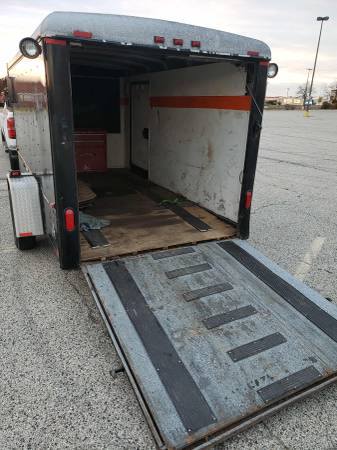 6x12 enclosed trailer, lights work, newer tires, spare tire, bearing buddies, side door, back gate door, roof vent, nose cone, 2 inch ball, bill of sale. Asking $2,750 OBO if interested call or text .