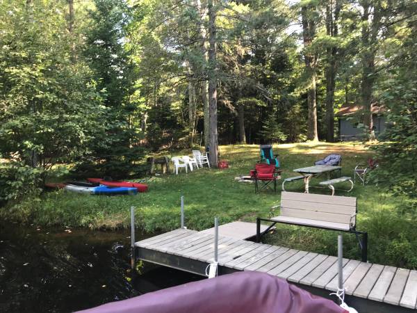 This cozy, comfy cottage is on the Somo Lake (has it's own pier) that leads into Lake Mohawksin and all great fishing area. The cost of the cottage includes a canoe and a rowboat (kayaks available to rent) if you wanted to enjoy the peaceful, gentle flow of our river. The wooded area gives you serenity for a relaxing vacation. There is a grill (propane or charcoal) on the patio to enjoy your evening time, or town is only 6 miles away and has many fine restaurants. The two bedrooms has 3 queen beds (sleeping up to 6 people). We still have days left to come view our Northwoods fall color! Come for 3 nights (@$120/night) or stay a week for $695. It includes all kitchen amenities, comforts of a living room and necessities of a bathroom! Send your email address for a brochure of what detail amenities and pictures.