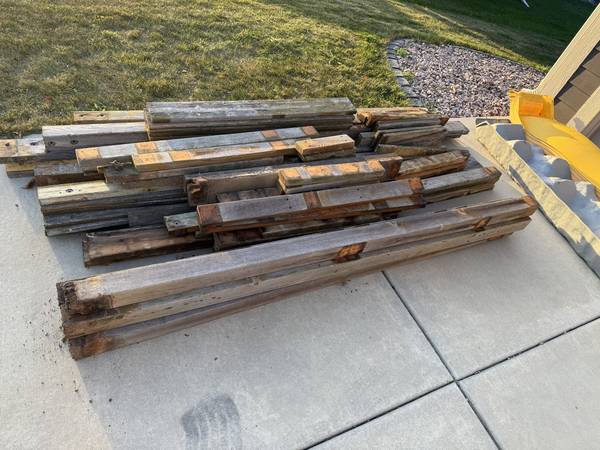 Free lumber - weathered pressure treated lumber from an old child's play structure. Varying sizes - 1" by 6", 4" by 4", 2" by 6" and 2" by 4". The plastic slide and climbing wall are included.